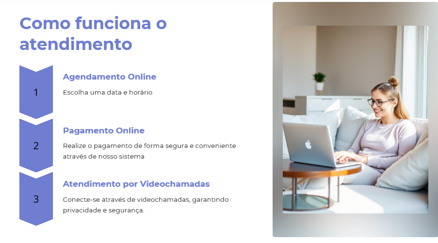 Atendimento acolhedor e empático, focado em suas necessidades e objetivos.